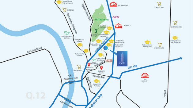 Tọa lạc vị trí đắc địa ngay mặt tiền đường Nguyễn Văn Tiết, liền kề đại lộ Bình Dương, từ Opal Skyline cư dân dễ dàng kết nối đến các tiện ích xung quanh và TP.HCM sầm uất.